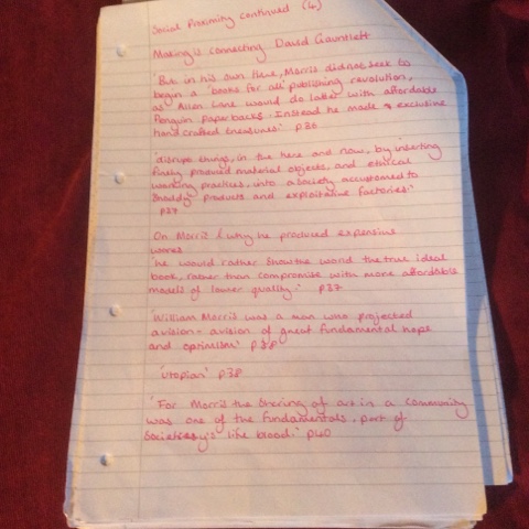 I then brought together all relevant quotes through colour coding and ordered them according to point with links in pink and quotes in grey with page number and authors initials.